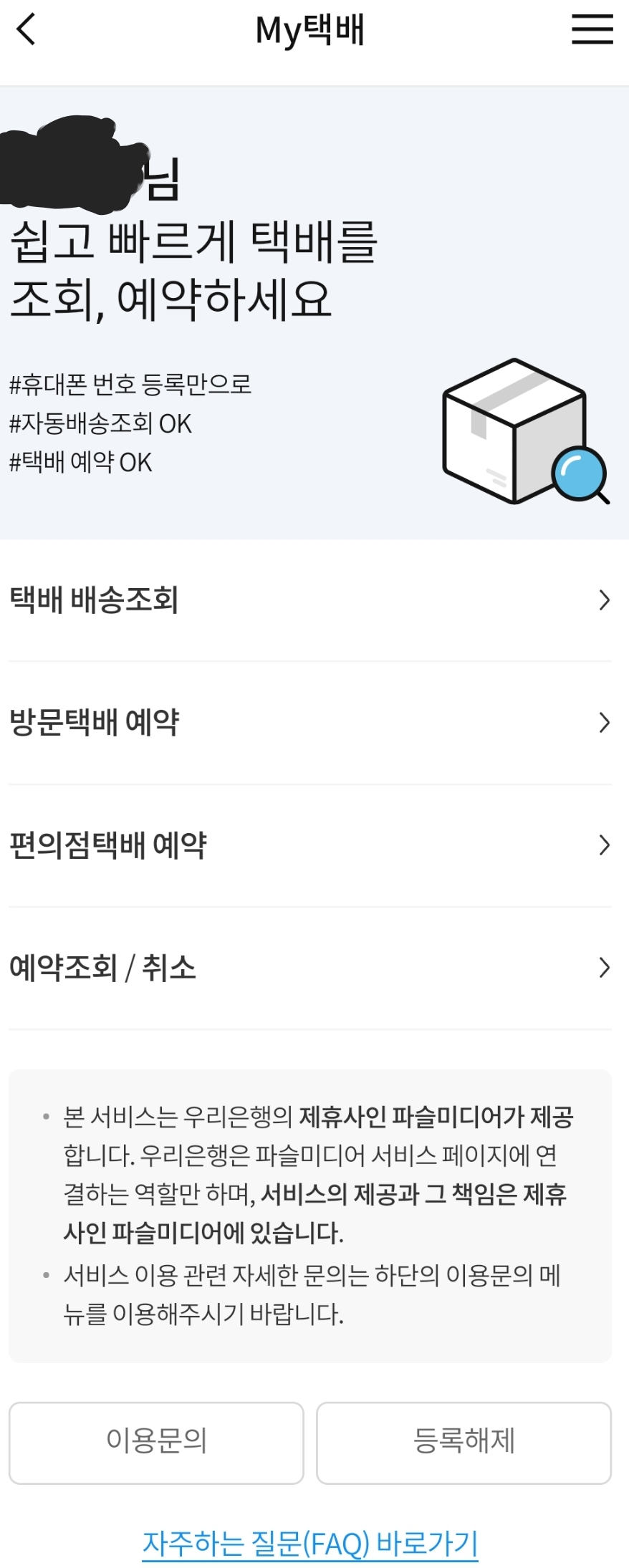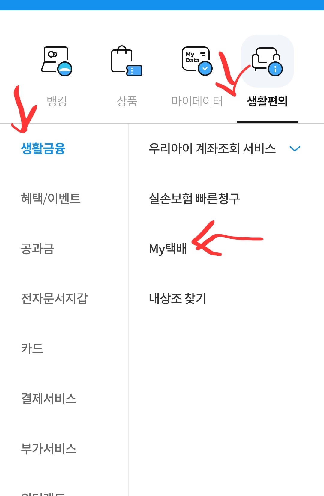 생활편의 → 생활금융 → My택배