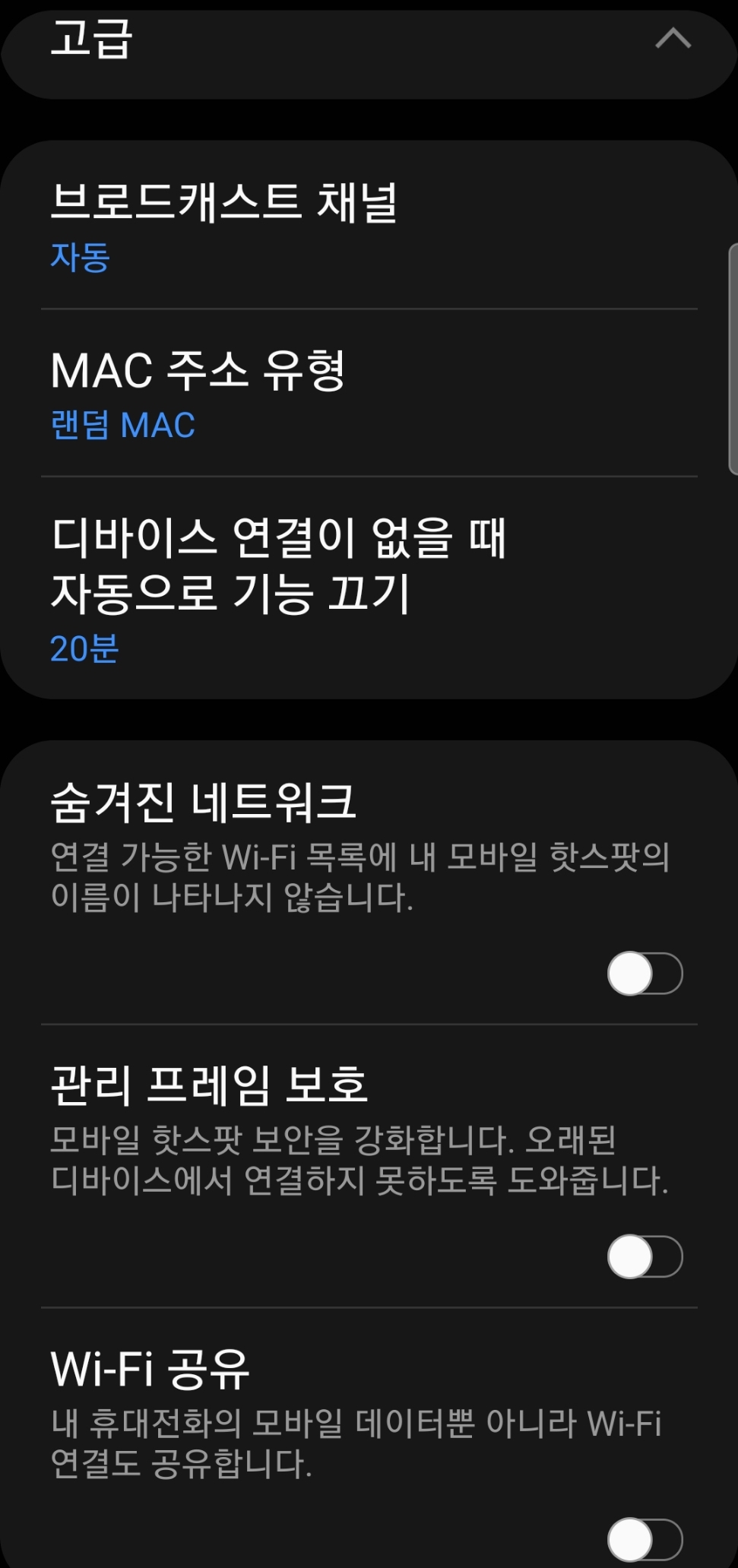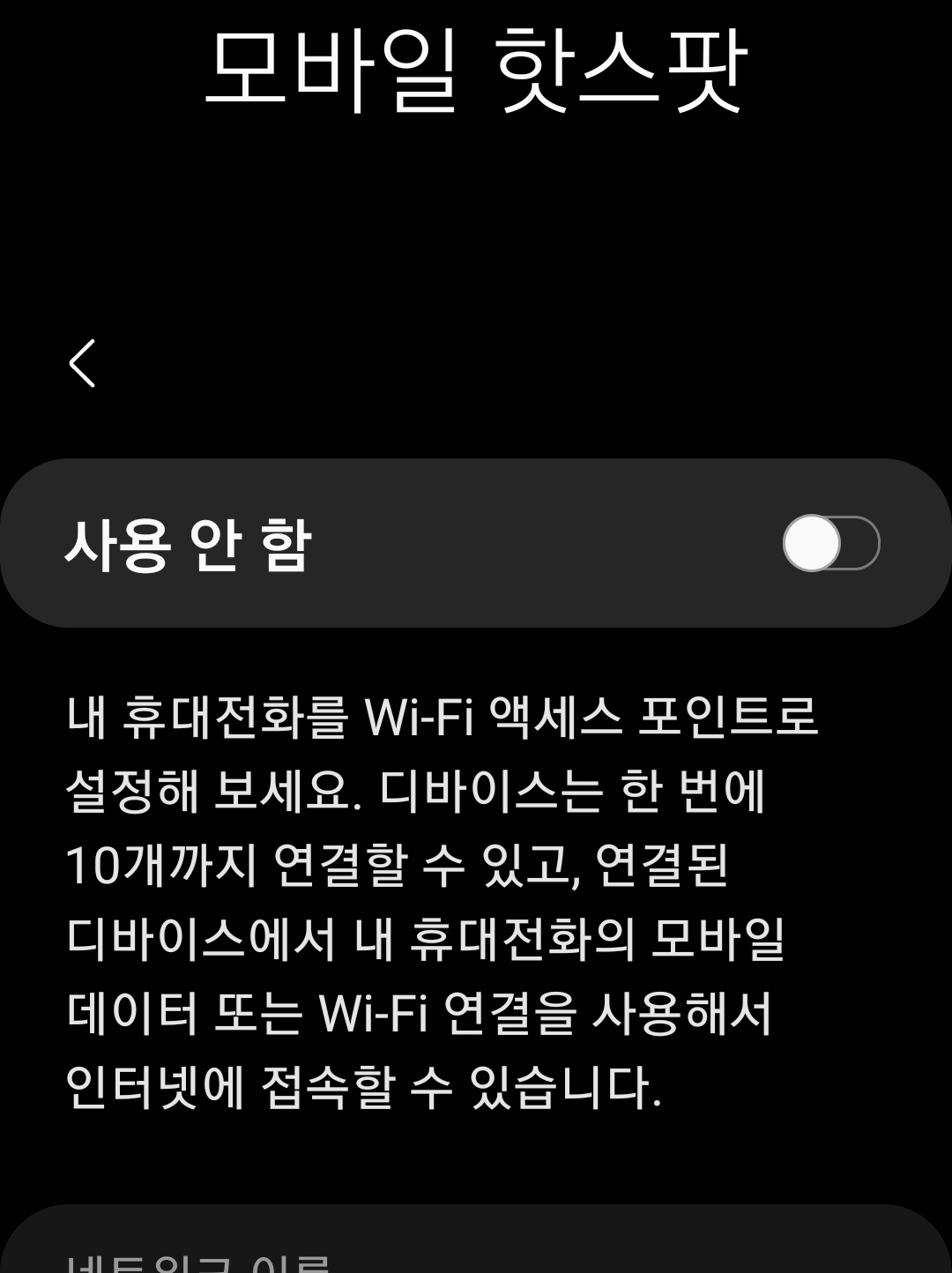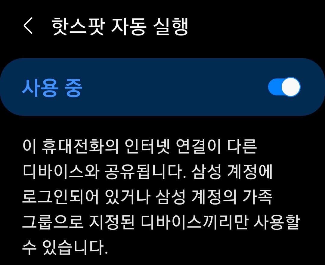 좋은 기능인데, 상태바에서 토글방식으로 모바일 핫스팟을 켜고 끄는 기능이 있으면 더 좋았을 것입니다.