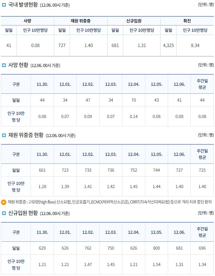 코로나19집계(2021.12.6. 0시기준): 4325명 본문