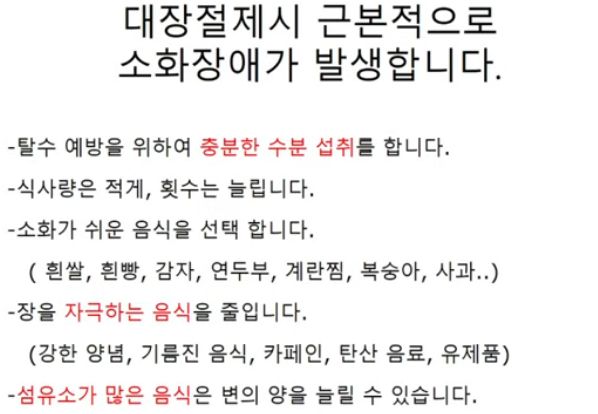 대장절제시 근본적으로 소화장애 발생.
