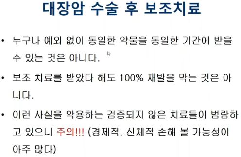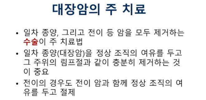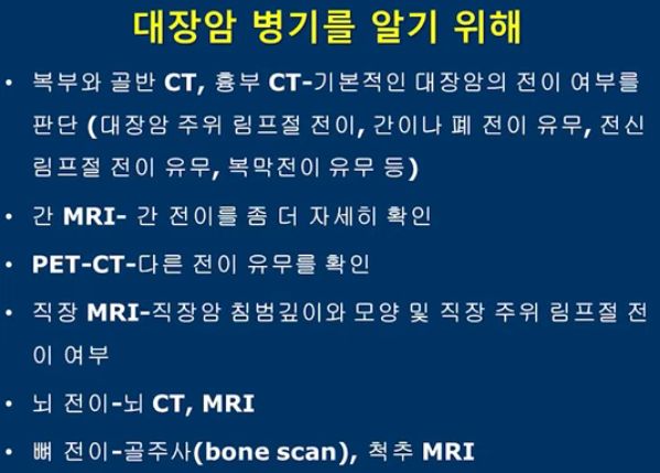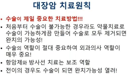 이 동영상의 이후 이야기는 세부적인 이야기. 암의 진행단계판단, 결장암과 직장암의 차이 등.