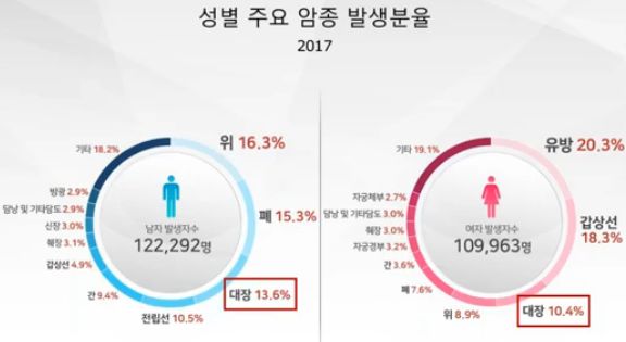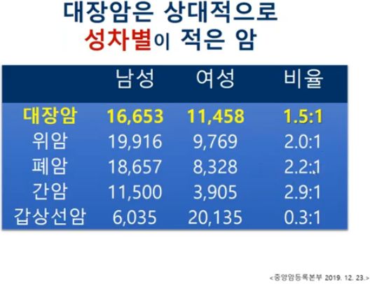 이제 대장암환자수는 위암환자수와 비슷한 정도.