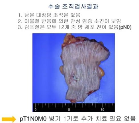 이후 절제한 용종/선종을 조직검사해 암여부를 확인(대장암 확진).
