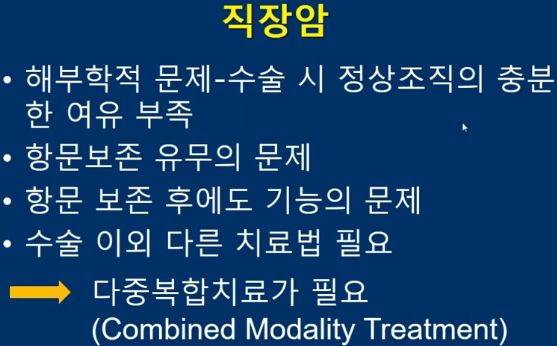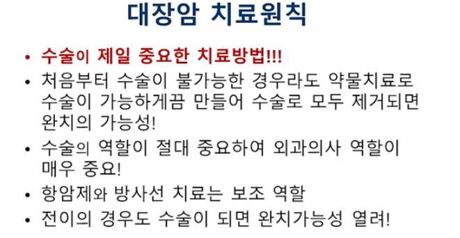 (* 2021년 다른 의사의 영상을 보면, 요즘은 항암제를 써서 수술로 절제할 환부를 줄이는 방법을 적극적으로 사용하는 경우도 있다고 했다. 그런데 암조직은 균일하지 않고 대장모양과 길이부터 환자마다 다르다. 암조직의 치료 저항성. 그에 따라 치료법도 하나로 정해진 게 없다.)