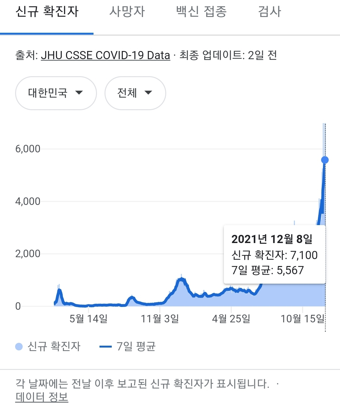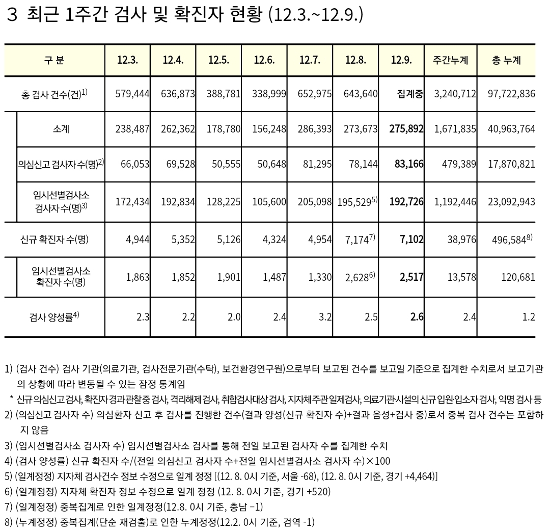 코로나19집계(2021.12.9. 0시기준): 7102명 본문