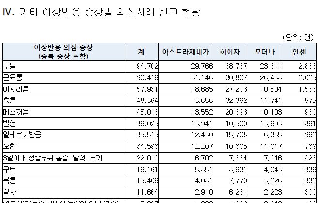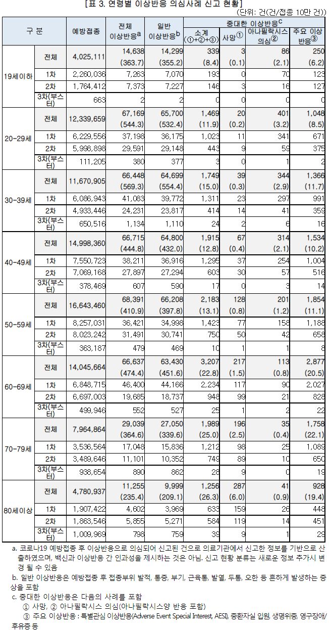 코로나19 예방접종 후 이상반응 주간 분석 결과(40주차)(2021.12.9) 본문