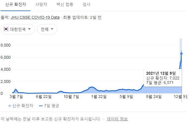 코로나19집계(2021.12.10. 0시기준): 7022명 본문