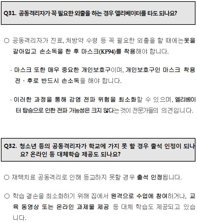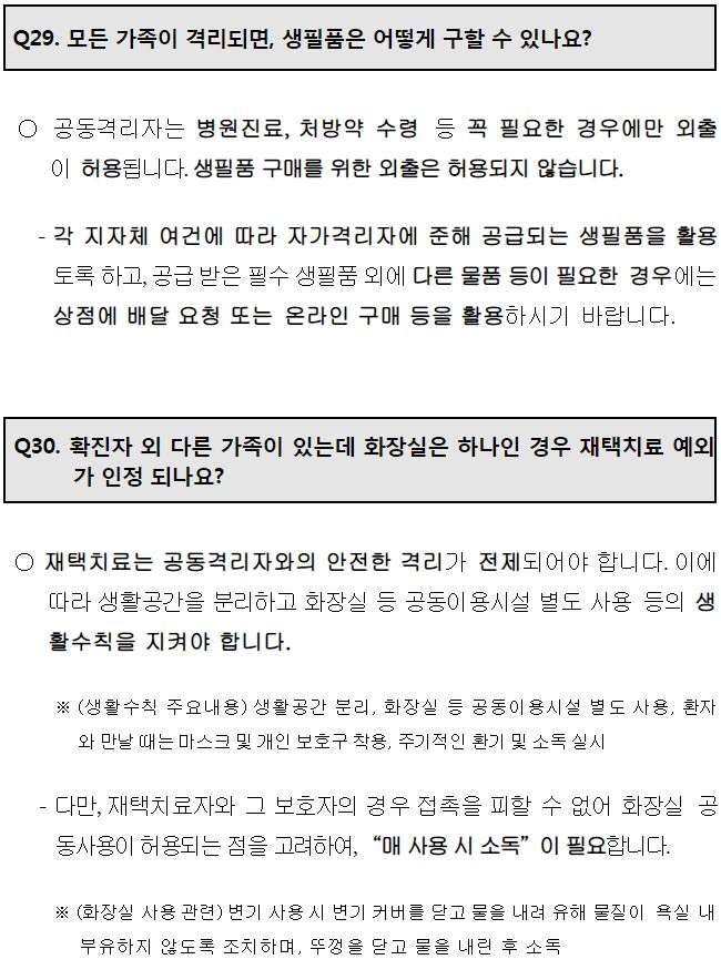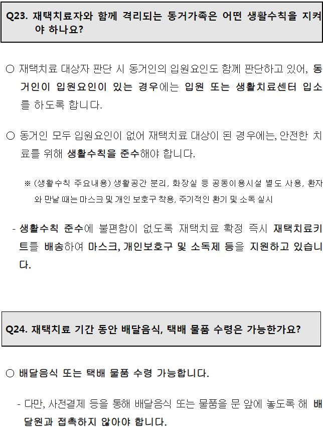 재택치료생활 문답