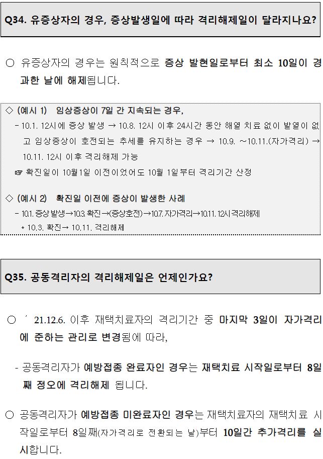 격리기간은 10일 그대로 유지.