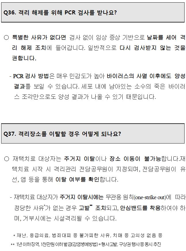 ㅡ 반드시 관할 보건소의 "재택치료관리팀"에 음성전화로 사전연락해 승인받을 것. (재택치료앱으로 현위치는 상시전송되므로, 무단이탈로 처벌받지 않도록)