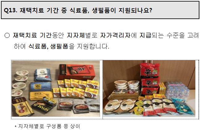 그 외 격리생활하게 되는 재택치료기간동안 배달되는 생필품과 식료품.