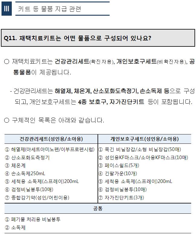 ㅡ 재택치료키트와 방역물품