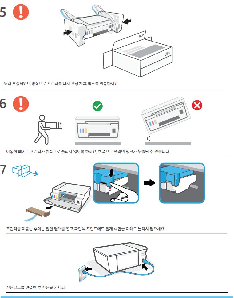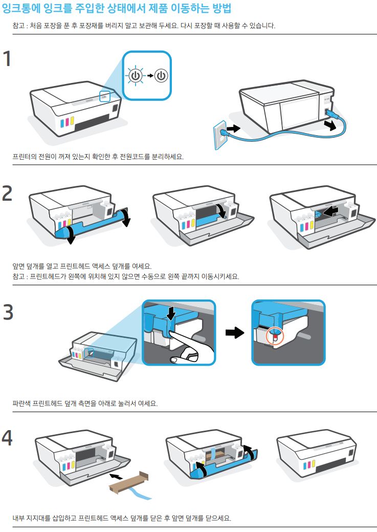 잉크있는 상태에서 제품이동. 잉크젯 프린터라면 이거 중요합니다.