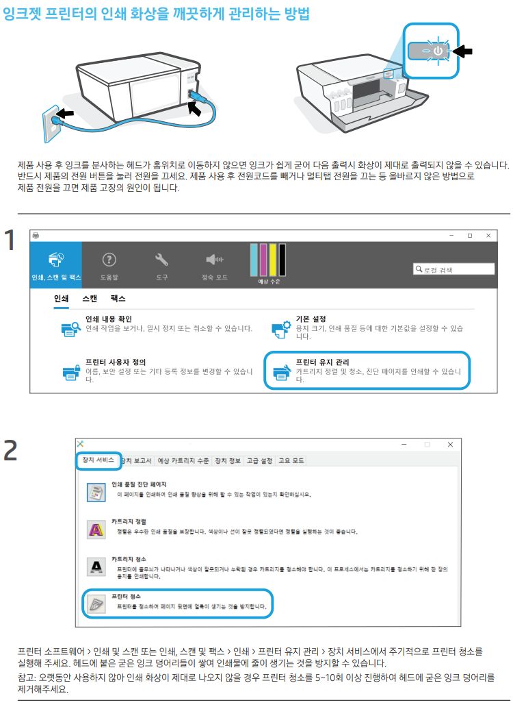 잉크막히지 않게 청소