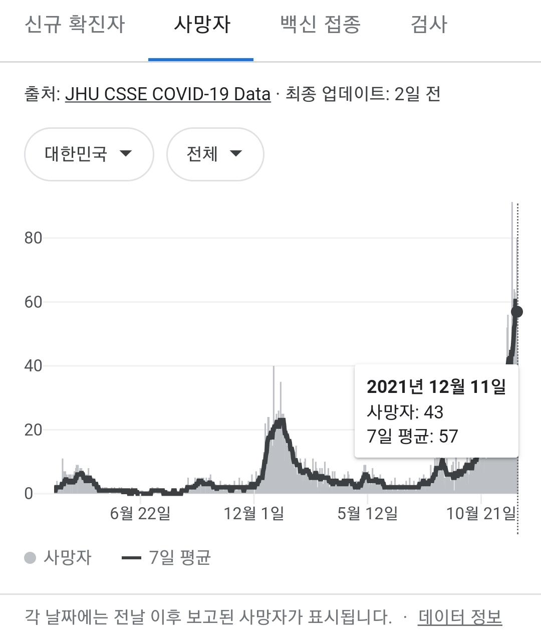 해외선 감소세 코로나 사망, 국내선 급증 우려 커져