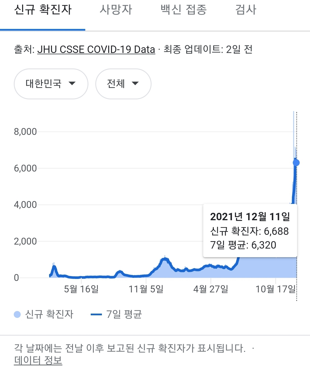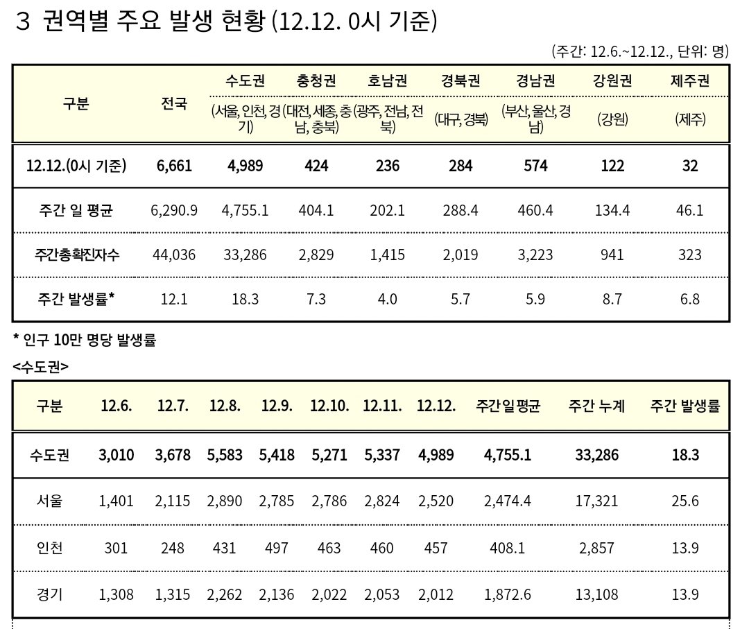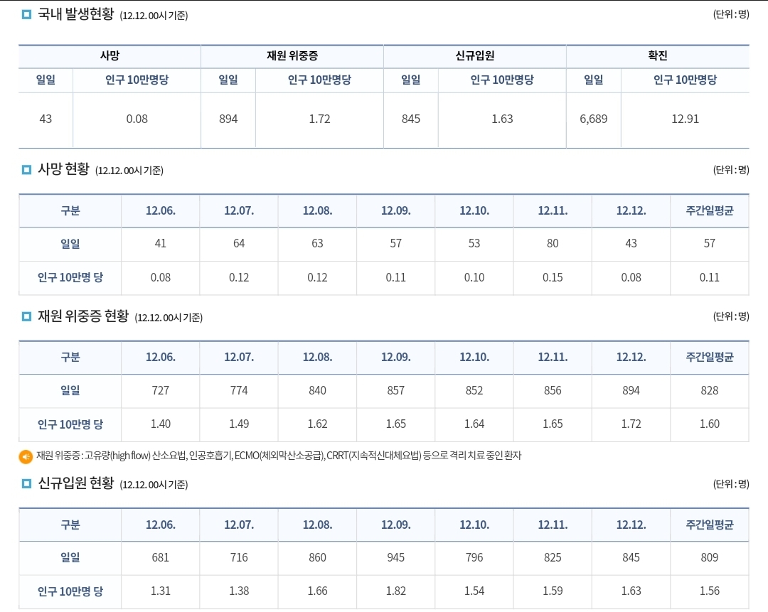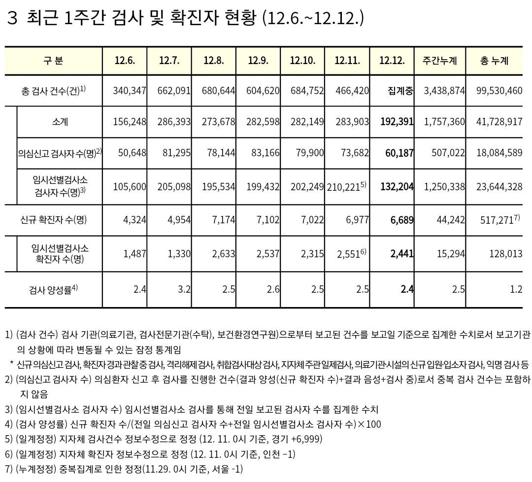 코로나19집계(2021.12.12. 0시기준): 6689명 본문