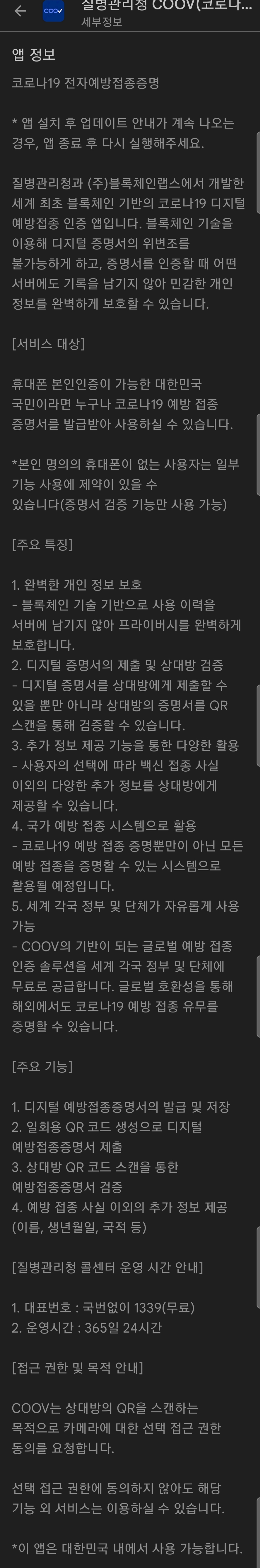 질병관리청 COOV(코로나19 전자예방접종증명서) - Google Play 앱