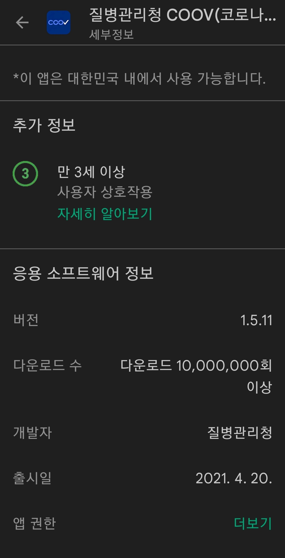 https://play.google.com/store/apps/details?id=kr.go.kdca.coov