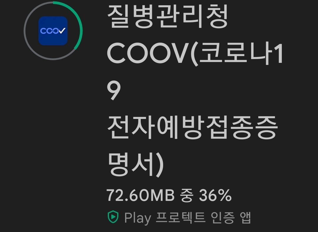 앱은 꽤 무겁네요. 70메가가 넘네.. 그러니, 무선랜(wifi 와이파이)환경에서 앱을 설치하세요. 그리고 접종증명발급까지 한 다음에 외출하세요.