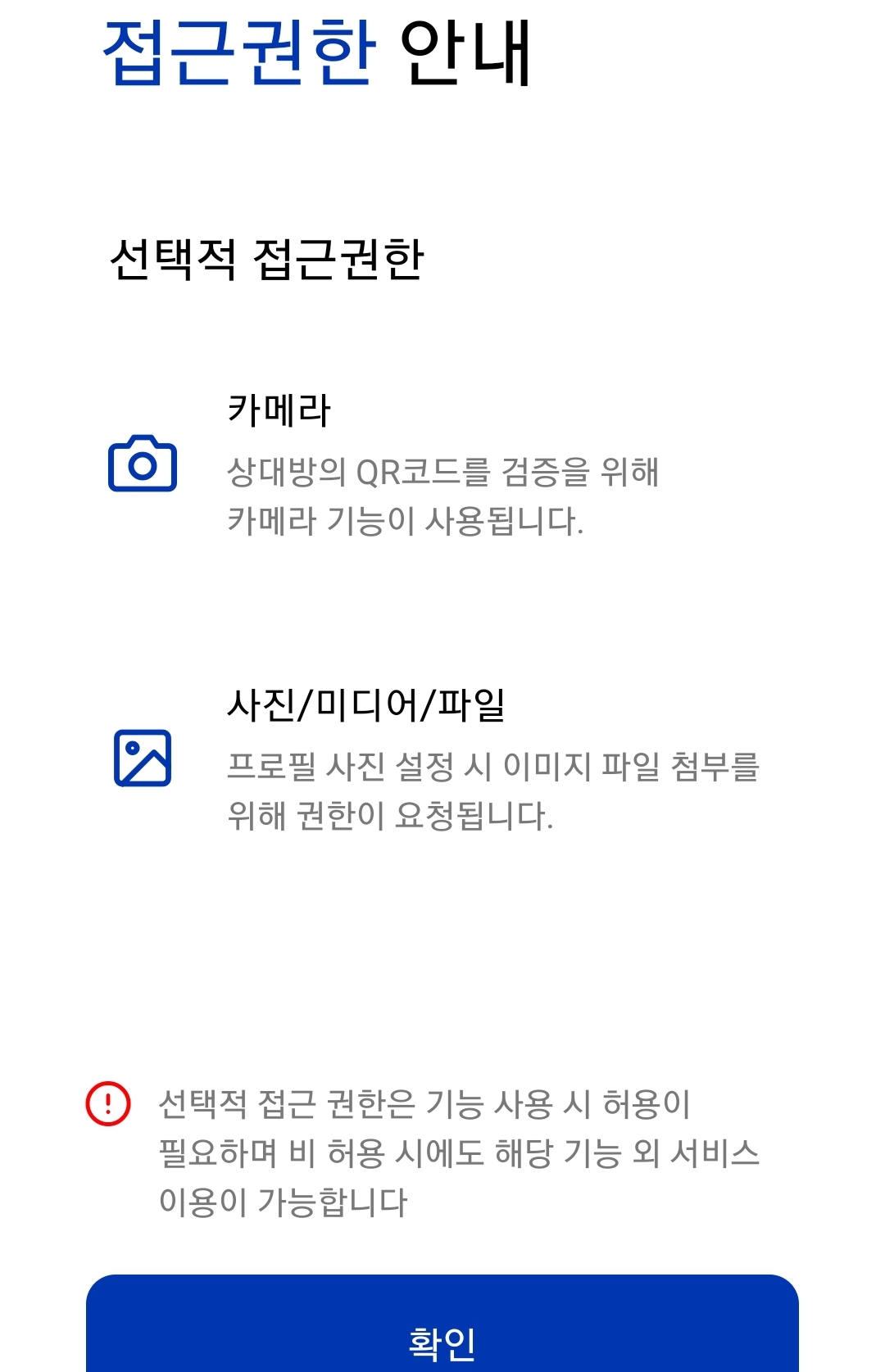 카메라와 사진파일열람 권한을 요구한다고 고지하고