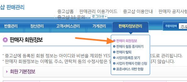이 부분은 지금 기억을 더듬어 사이트 메뉴를 뒤져보니 "판매자 회원정보"란에서 조회하고 바꿀 수 있습니다.
