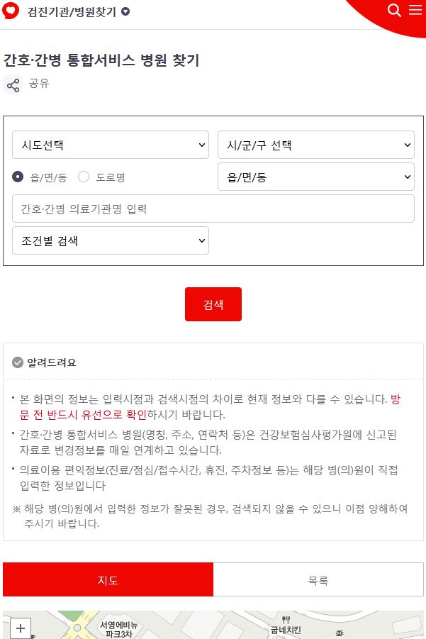 국민건강보험, 간호/간병 통합서비스 병원 찾기 본문