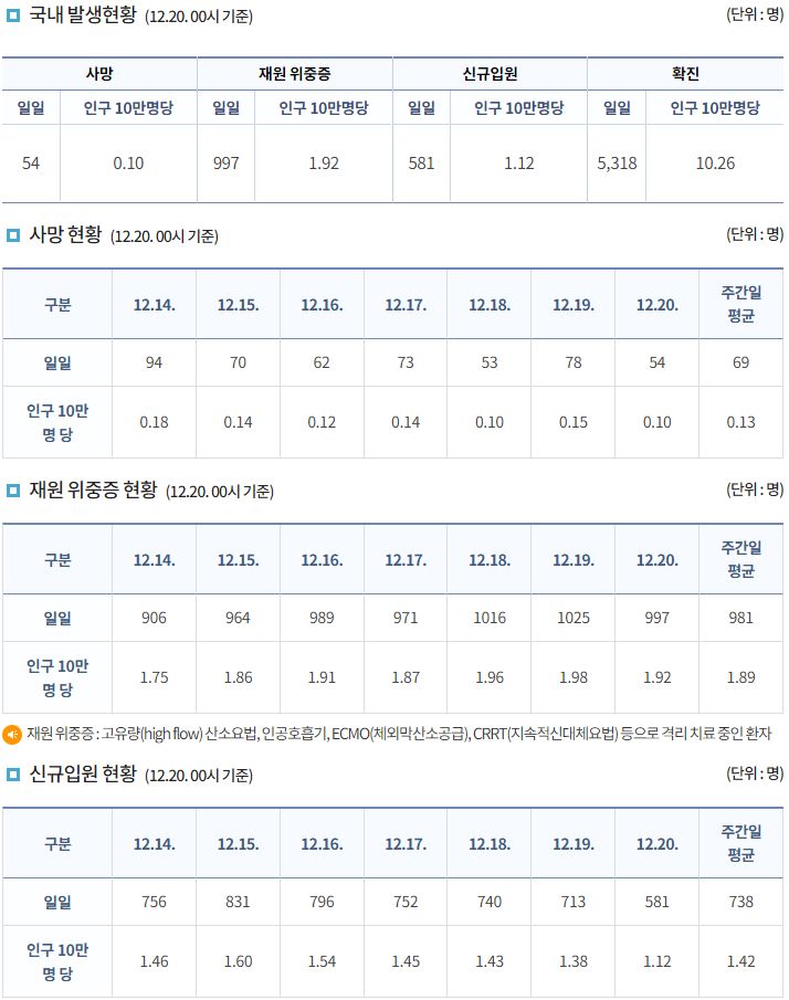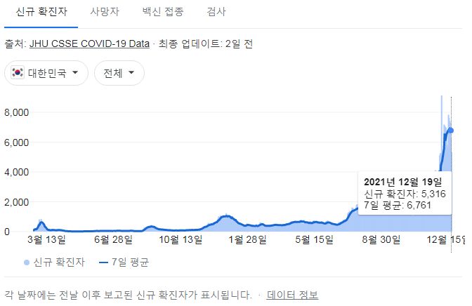 코로나19집계(2021.12.20. 0시기준): 5318명 본문