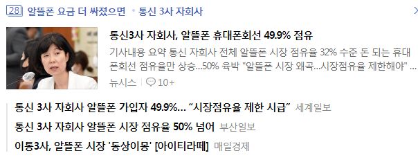 "통신 자회사는 알뜰폰 시장을 50% 이상 점유할 수 없다." (첫 번째 뉴시스 기사)