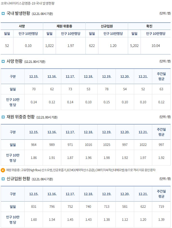 코로나19집계(2021.12.21. 0시기준): 5202명 본문