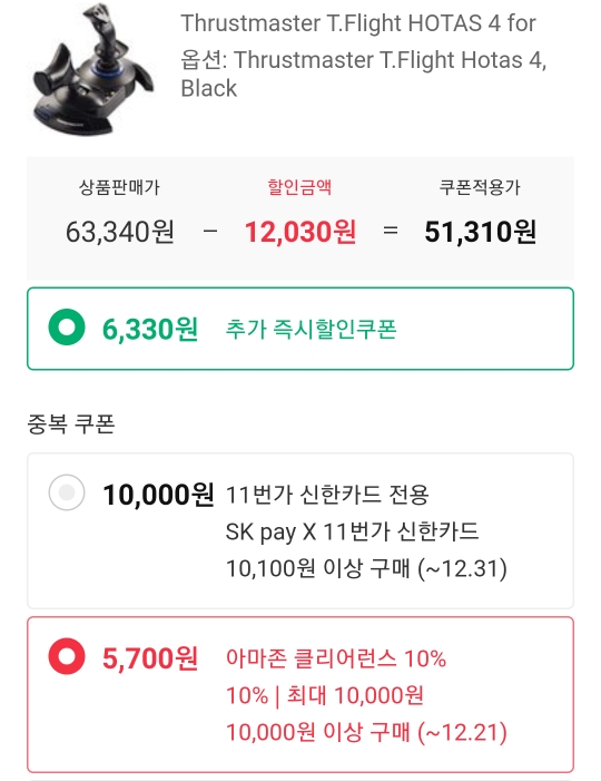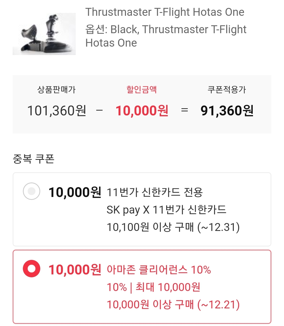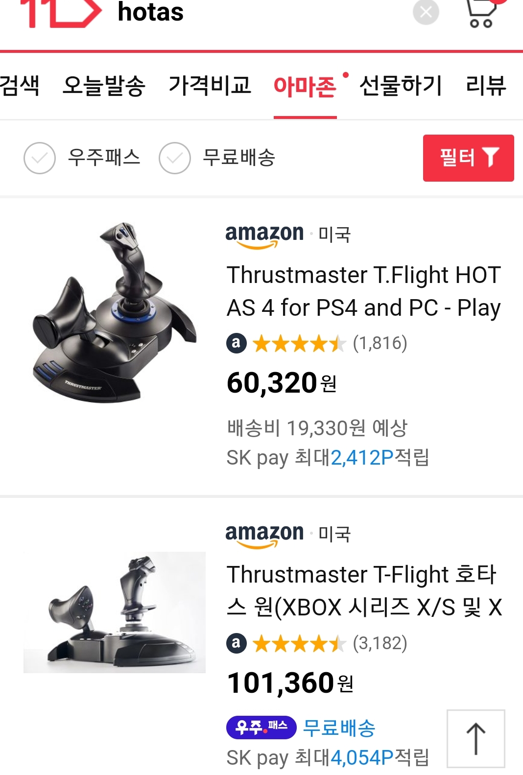 (11번가-아마존) 트러스트마스터(Thrustmaster) T.Flight HOTAS 4(~4.6만원/우주패스), HOTAS One(~8.6만원/우주패스)/:/