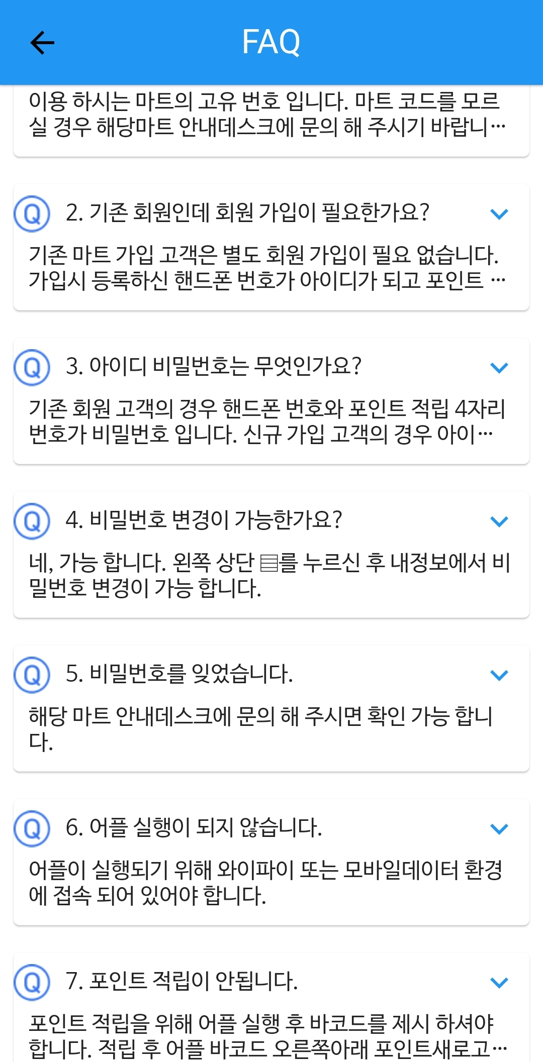 마트온앱은 자기가 가입한 동네마트나 지점이나 가맹점비슷한 마트 세일전단을 보여주고, 계산대에서 보여주면 POS기로 화면을 찍어 적립금처리를 해주는 앱입니다.
