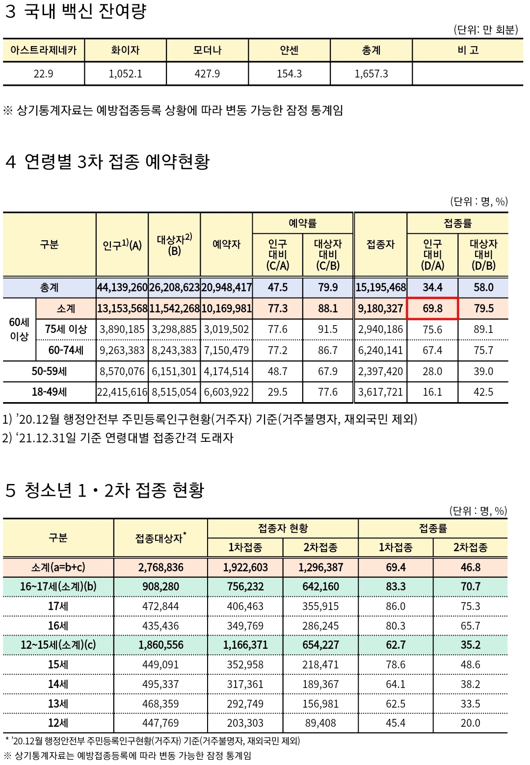 일부 표는 오전 브리핑보도자료에는 있지만 오후 정례브리핑보도자료에는 빠져있습니다.