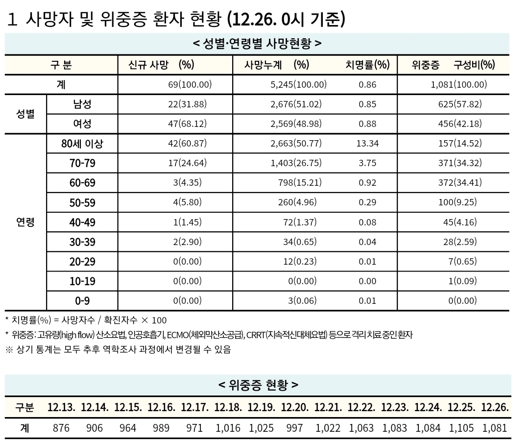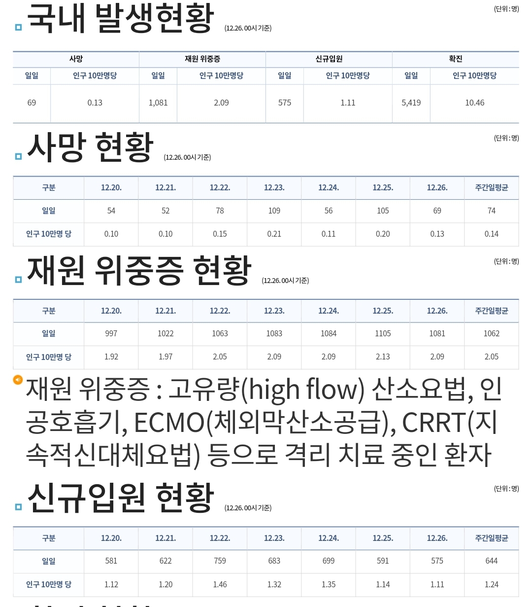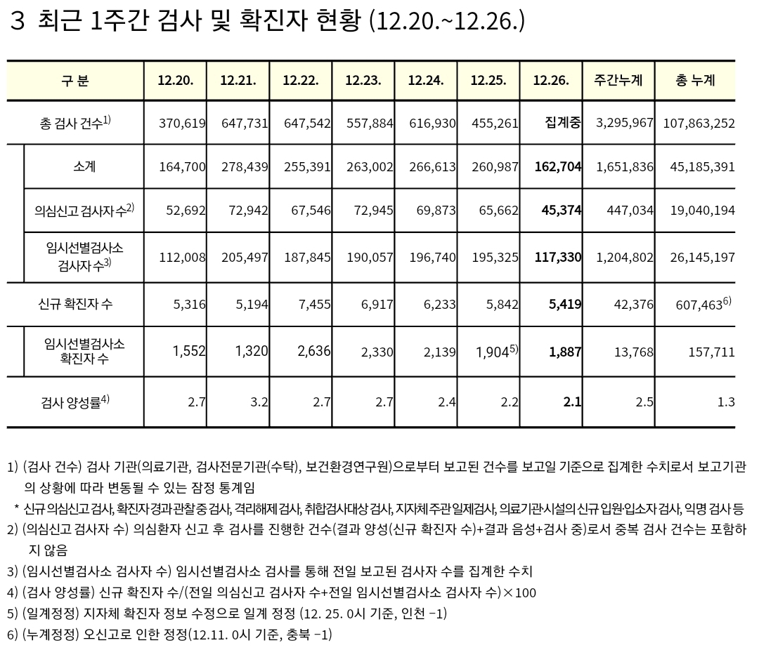 코로나19집계(2021.12.26. 0시기준): 5419명 ★ 본문