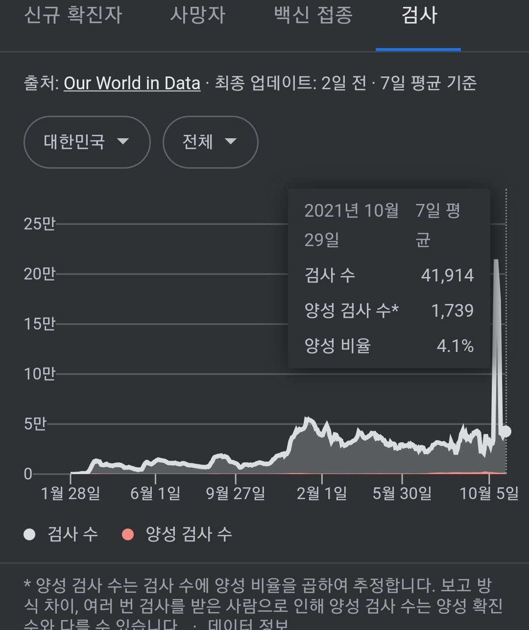 일일 총 검사수 집계표가 좀 알기 어렵네요. 이게 구글집계와 정부집계가 다른 이유인가?