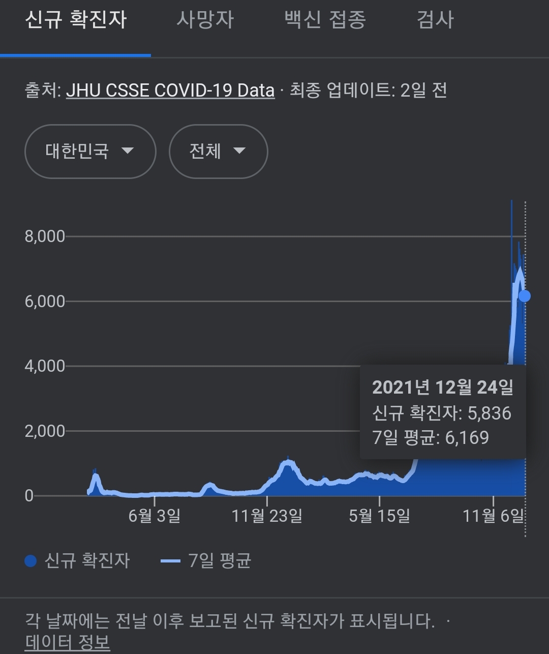| 코로나19집계(2021.12.25. 0시기준): 5842명 (0) | 2021.12.25 |