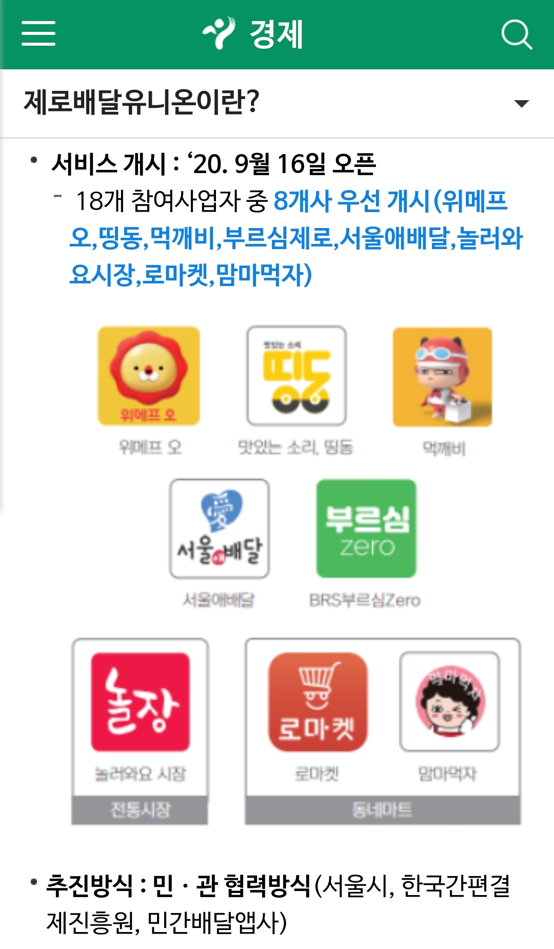 ※ 제로배달유니온에 관한 기사를 보았는데, 시장점유율확대에 초점을 두고 비판하거나 요구하는 기사가 많더군요. 그런데 그럴 필요가 있을까요? 비용을 낮춘 공공인프라가 목적이면 가맹점과 이용자가 원할 때 쓸 수 있으면 그걸로 된 게 아닐까요. 홍보에 비용을 쓰라는 기사도 있던데 서울시라는 거대한 조직과 산하기관/공기업들이 가진 자원을 쓰는 것말고 더 뭘 해야 하는지 모르겠습니다. 뭘 한다면, 배민이나 요기요 등 민간 배달앱업체들이 자기 앱 가맹점(식당 등)들의 제로배달유니온 동시가맹을 막지 못하도록 조례를 만드는 정도가 맞지 싶은데요.