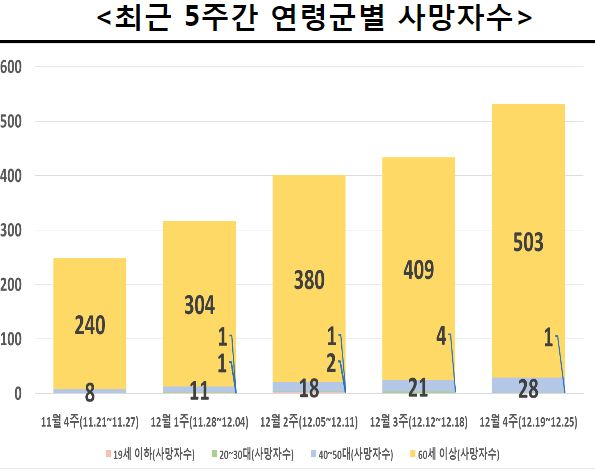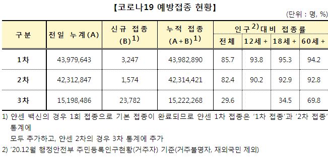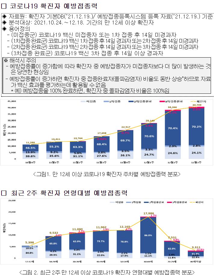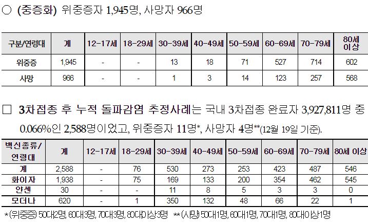 "주간 사망자 중 미접종자·1차 접종자 53.3%, 2차 접종자 43.7%, 3차 접종자 3.0% 발생"