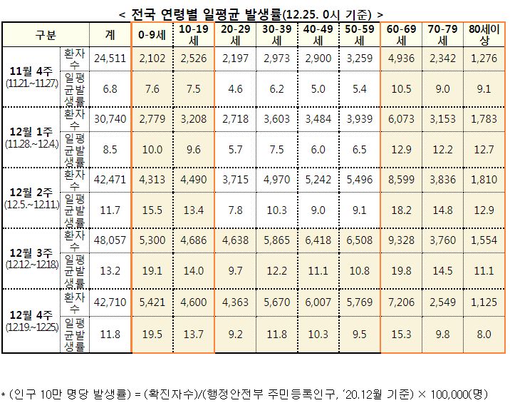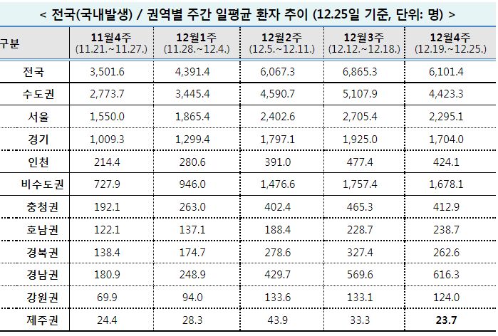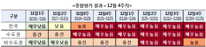 * 전국 Rt : 1.16(12월1주) → 1.23(12월2주) → 1.15(12월3주) → 0.98(12월4주)