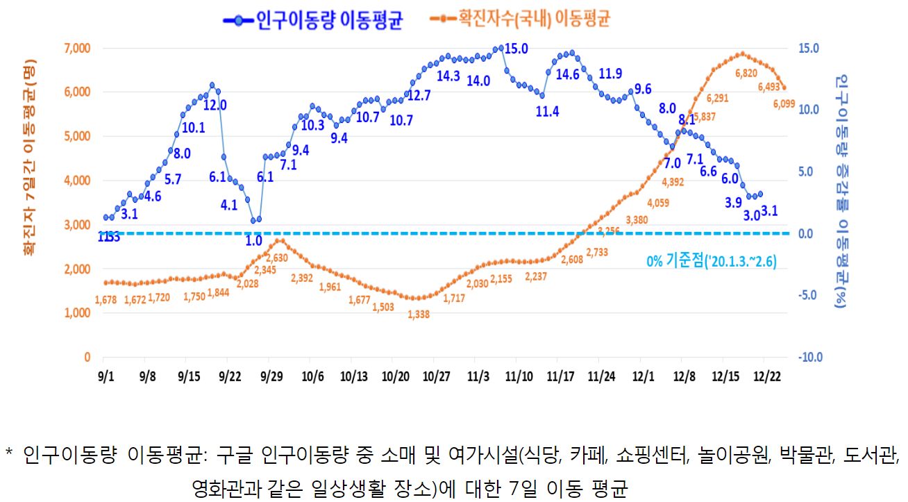 (12월 중순들어 위드코로나를 취소하고 거리두기를 재시행했는데, 어? 인구이동량 이동평균은 위드코로나를 한 것 같나요, 안 한 것 같나요? 구글통계 믿을 수 있나? 아니면?)