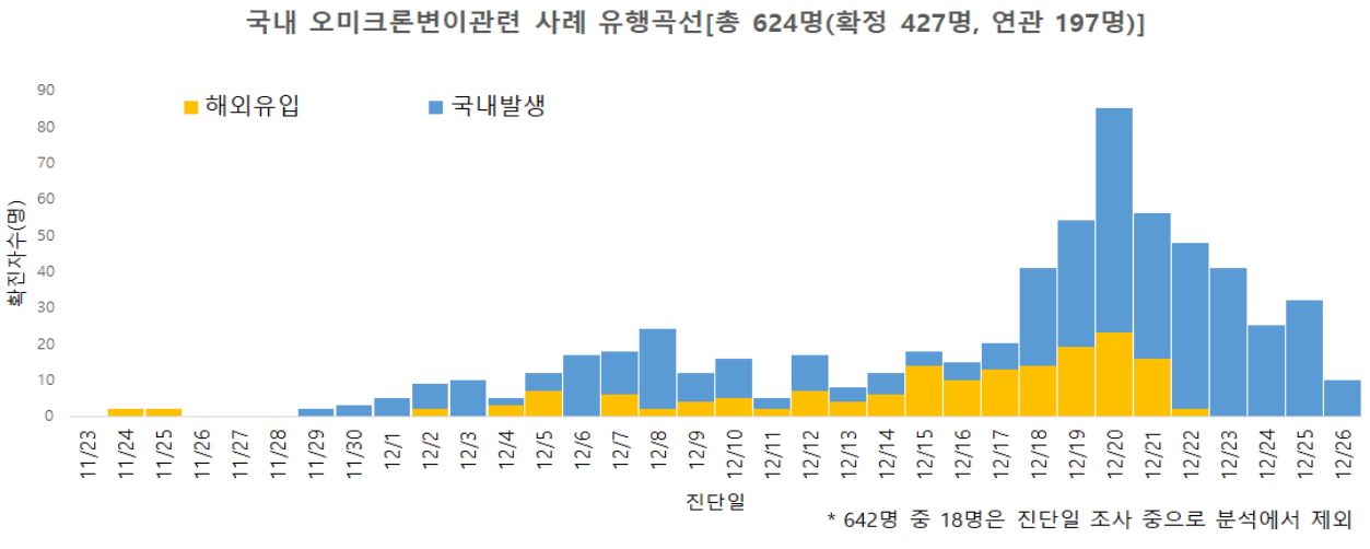 오미크론변이 감염자는 국내는 아직 적지만, 입국자 중에서는 이미 1/3을 차지.