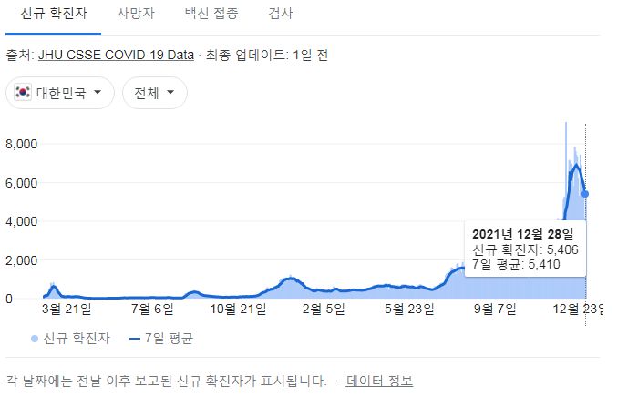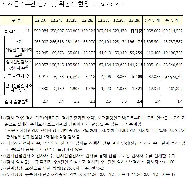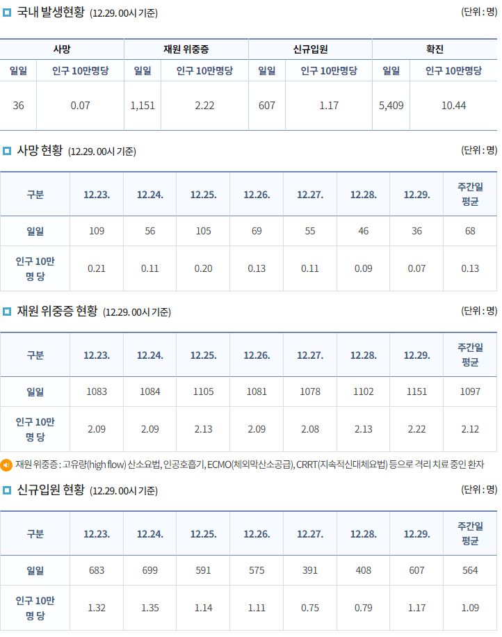 코로나19집계(2021.12.29. 0시기준): 5409명 ★ 본문