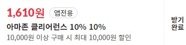 위 화면처럼 상품페이지에서 아마존 클리어런스 10% 쿠폰을 받습니다. 그리고 앱에서 결제과정을 진행합니다.