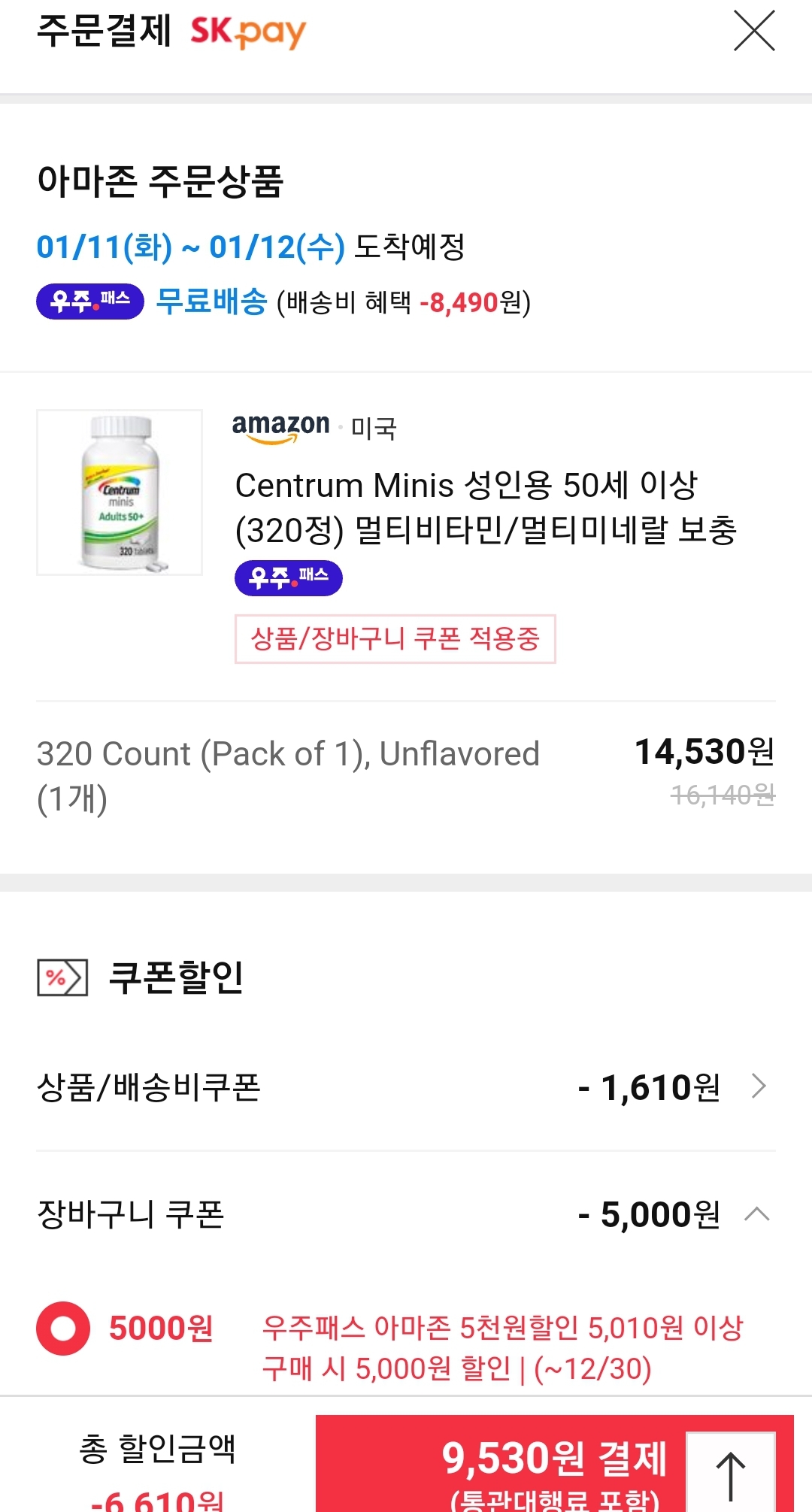 우주패스회원이 아니면 1개사서는 무료배송이 안 됩니다. 우주패스회원이 아니면 아마존 클리어런스 10%쿠폰만 적용해 개당 14530원이 되니까, 아마 2개 이상 사야 무료배송일 듯.