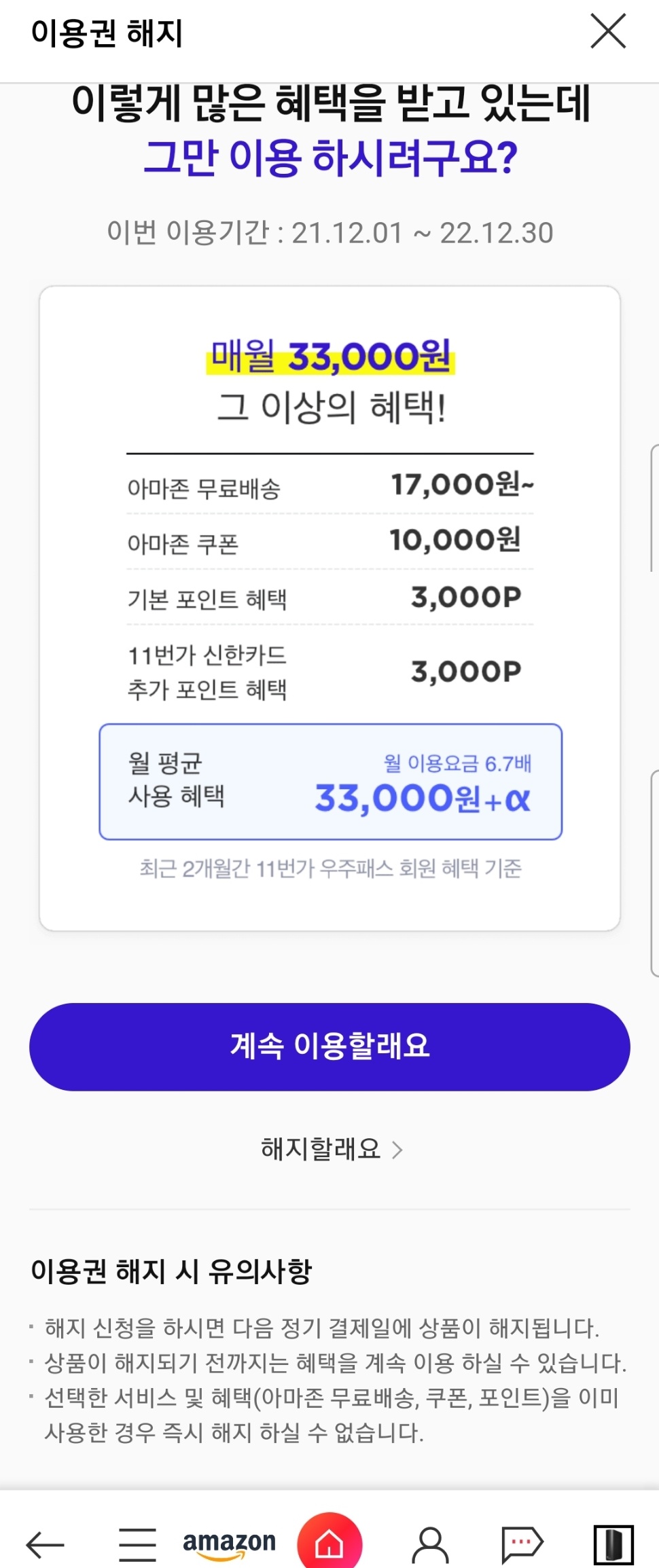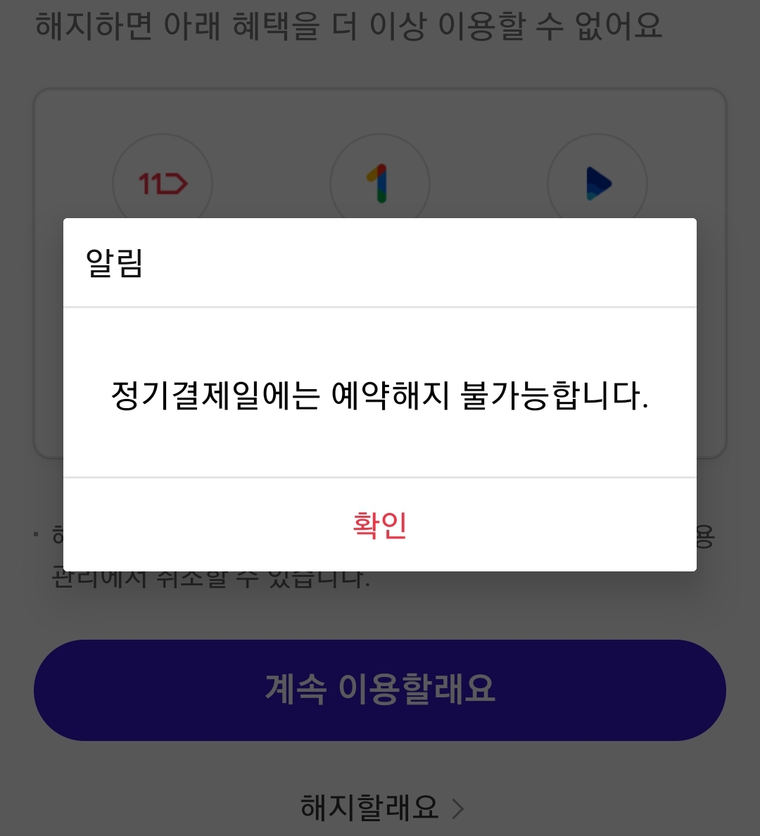 11번가 우주패스 구독해지 설정은 마지막 이용일에는 웹/앱에서 불가능 본문