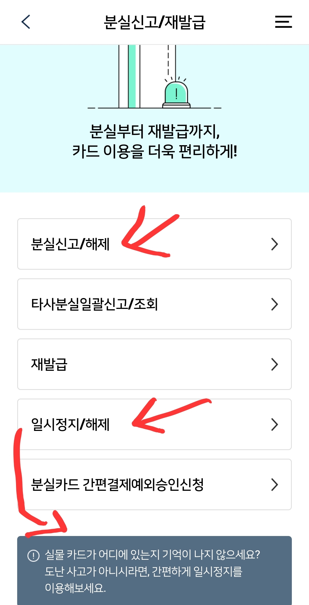 신용카드(우리카드) 분실신고/해제, 일시정지/해제 앱에서 하기 본문