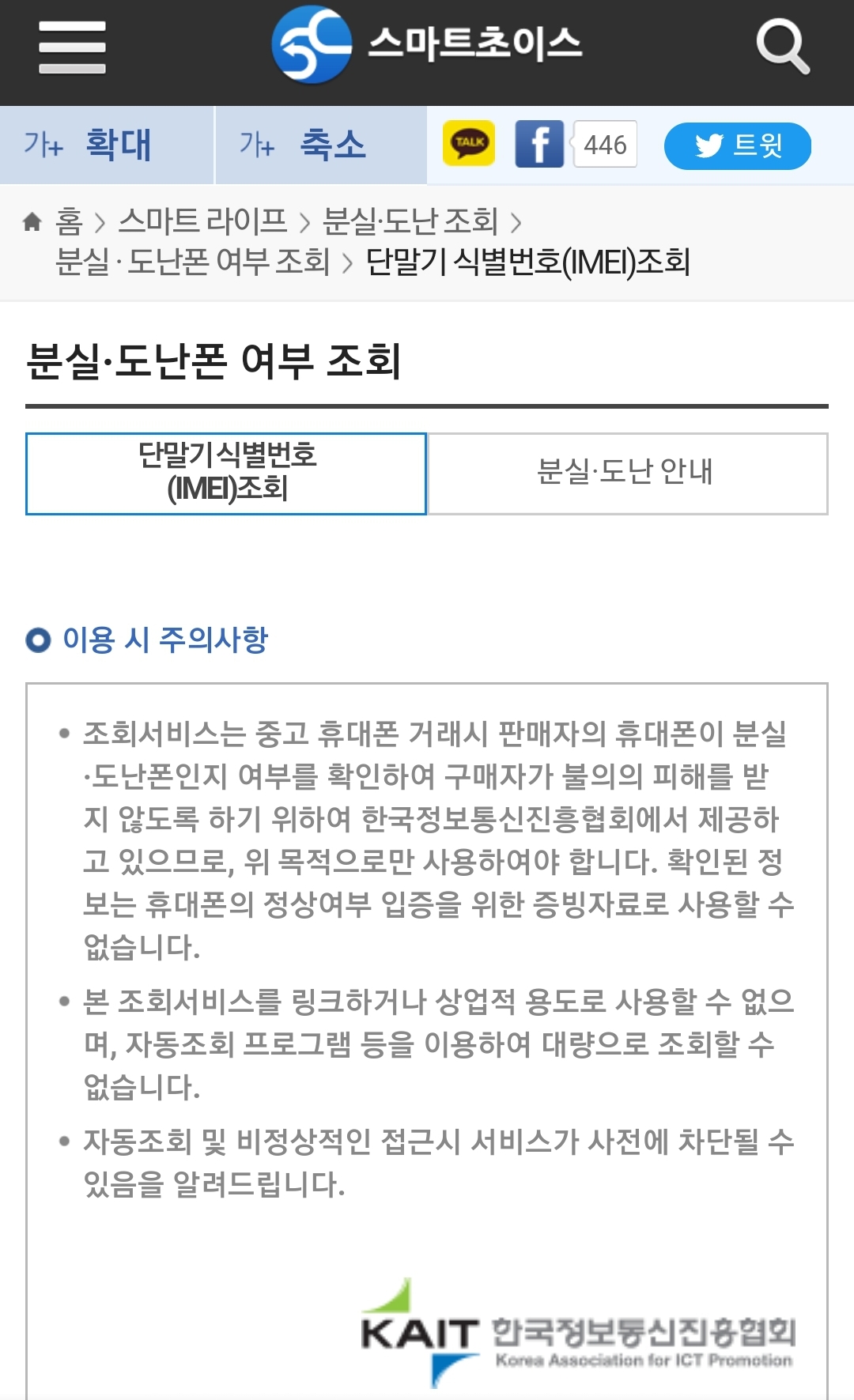 여기서 IMEI를 입력해 25%선택약정 요금할인가능한 단말기인지 여부를 알 수 있습니다.