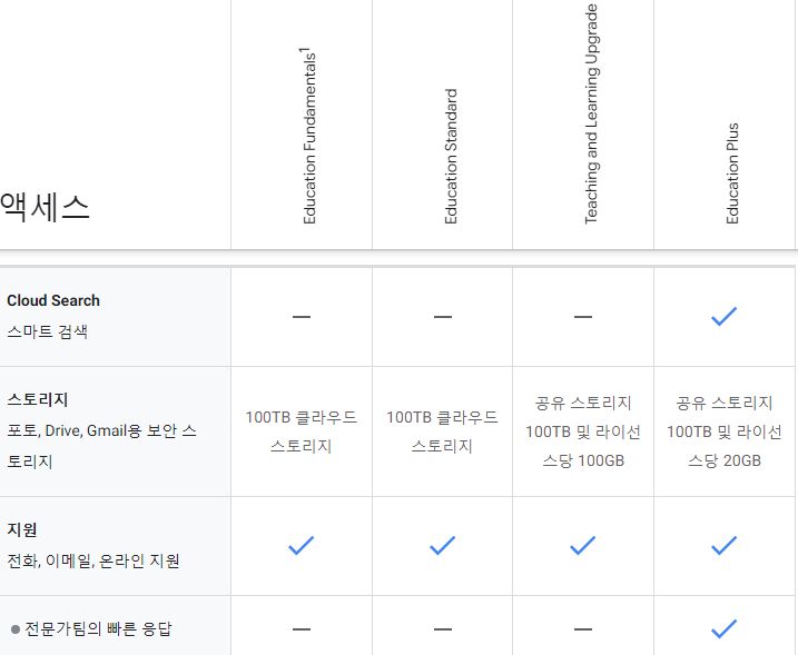 Google Workspace for Education에 포함된 기능 및 도구를 비교해 보세요.