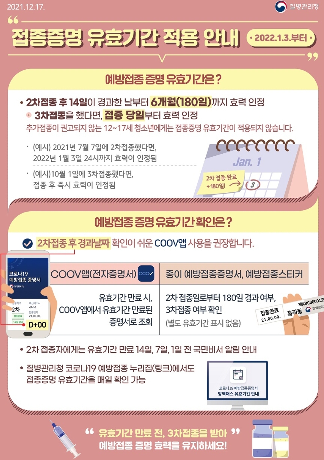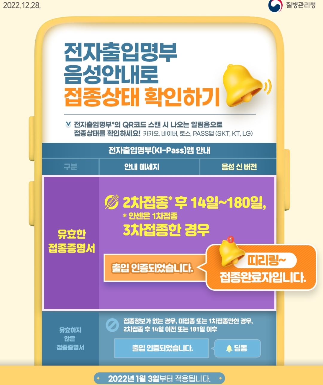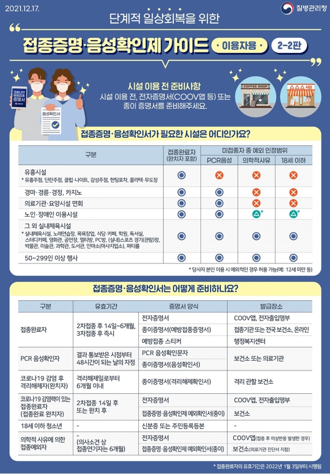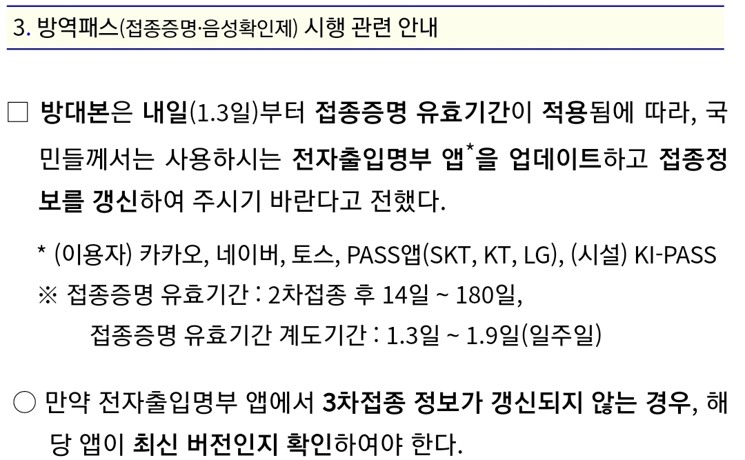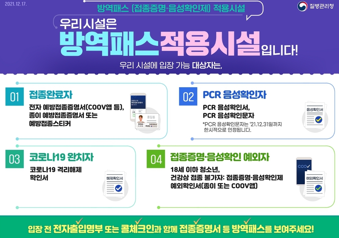 코로나19, 방역패스(접종증명·음성확인제) 시행 관련 안내와 홍보자료 (질병청, 2022.1.2) 본문