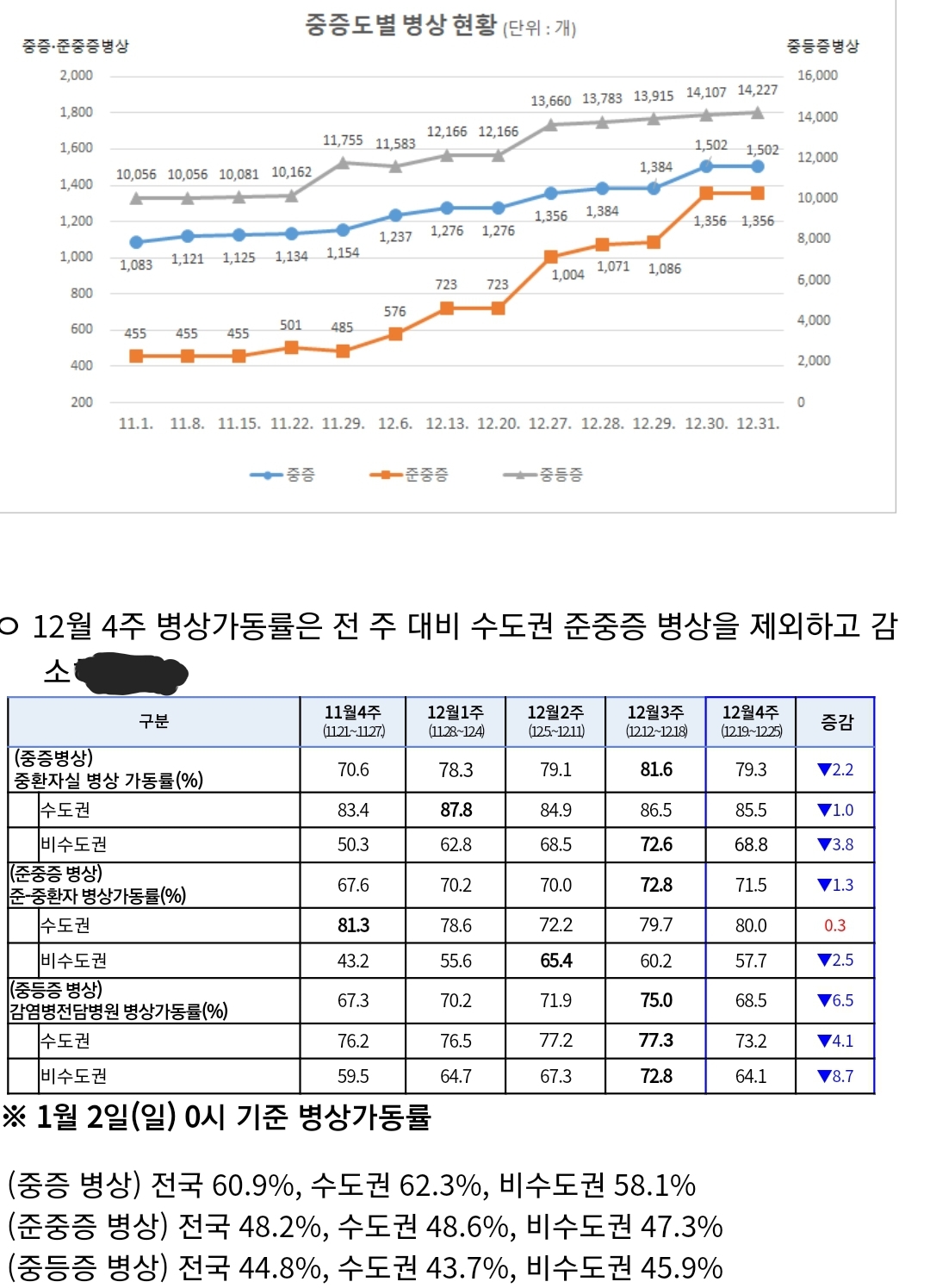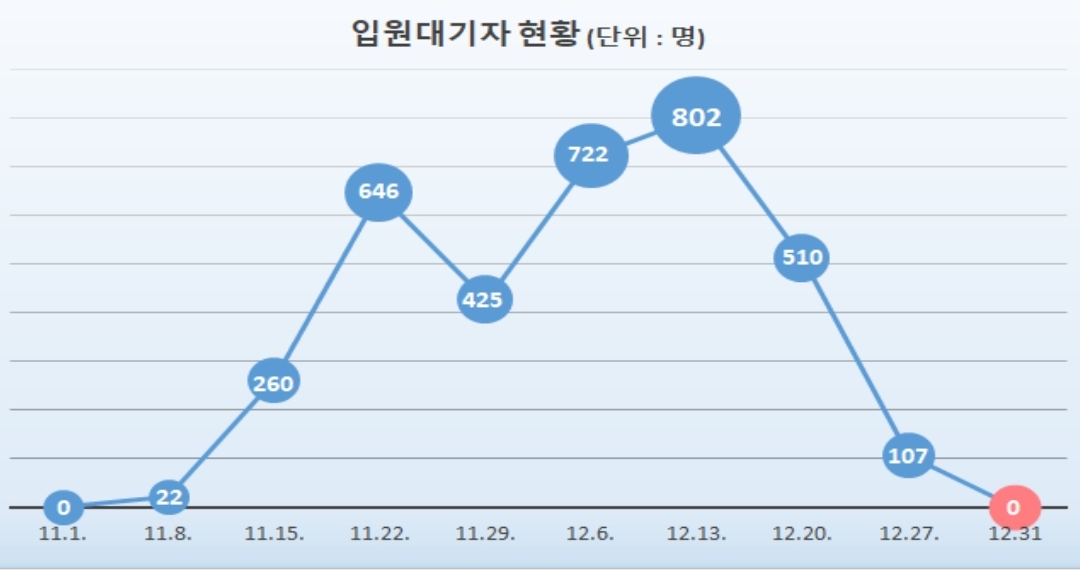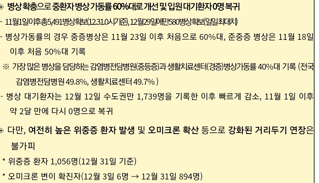코로나19 주간 유행 상황(2022.1.2): 확진자 증가세 꺾이고 입원대기집계 0 본문