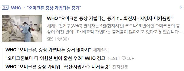 WHO "오미크론 증상 가볍고 확진·사망 디커플링"(종합)